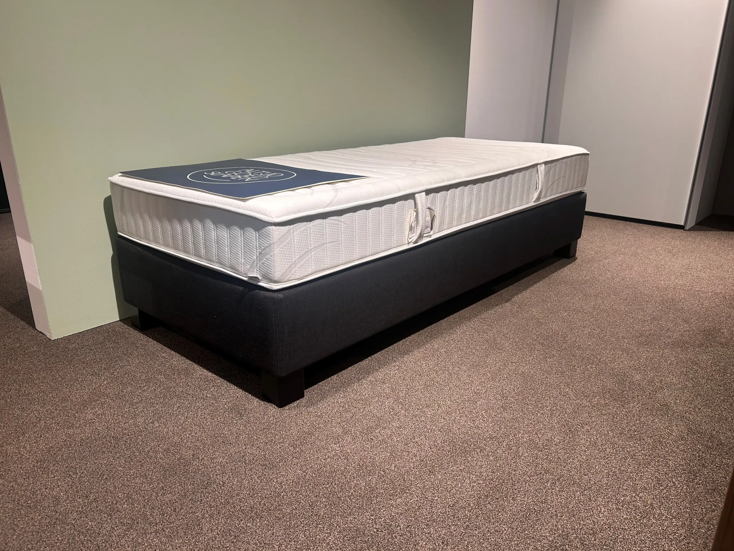 Dit model is uitgevoerd met een gestoffeerde omranding en een duurzame dwarsgespannen spiraal van Kuperus, gecombineerd met het comfortabele Avek pocketveringmatras Prata. De afmeting is 90 x 210 cm. De gestoffeerde omranding geeft het geheel een luxe uitstraling, terwijl de een goede stabiele basis en perfecte ventilatie. De Prata matras biedt dankzij zijn opbouw met diverse zones en de latex afdeklaag, comfort met een fijne wat stevigere ondersteuning, ideaal voor een goede nachtrust. Dit laatste opruimingsmodel is nu bijzonder gunstig geprijsd!
